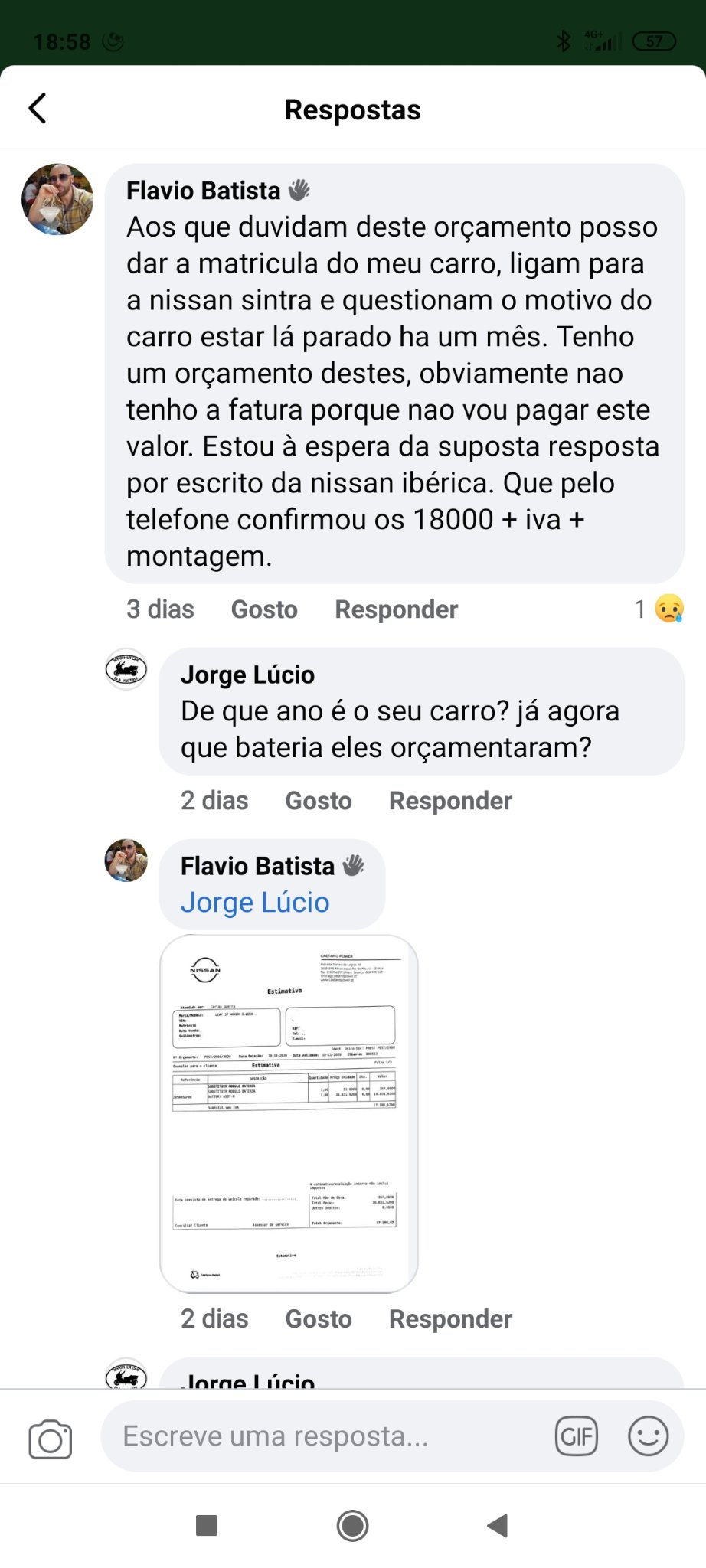 Obvio, a questão que eu não percebo é que isto parte de quem tem um carro destes, que parece que fica todo contente por desvalorizar mais o seu carro.Se eu recebesse um orçamento daqueles resolvia as coisas com a Nissan, não ia para as redes sociais. Se eu tivesse razão, com certeza que a coisa seria resolvida.