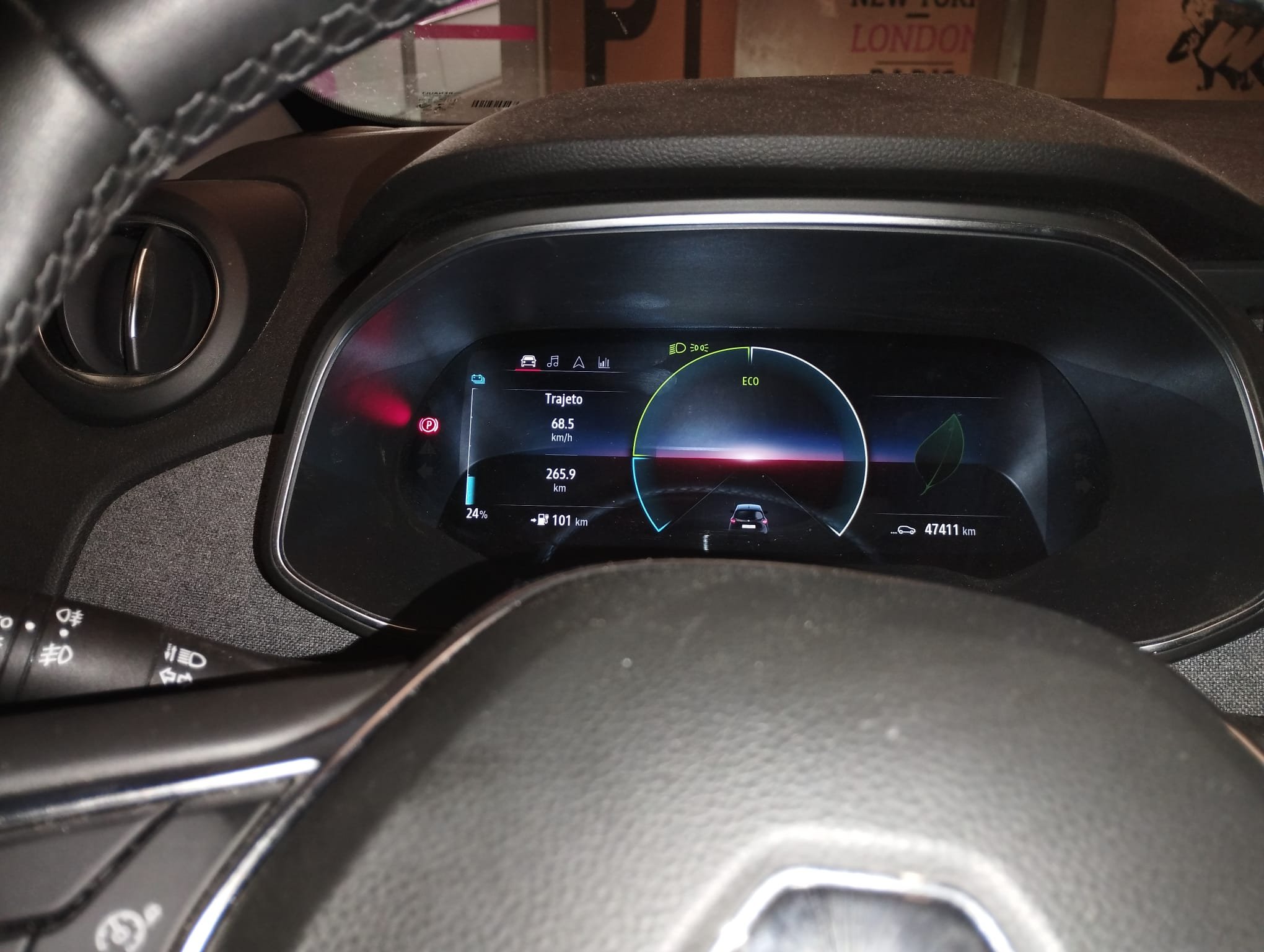 Deixo uma foto de uma das muitas viagens diárias que faço onde após ter feito 265km ainda tenho disponível mais 100km.