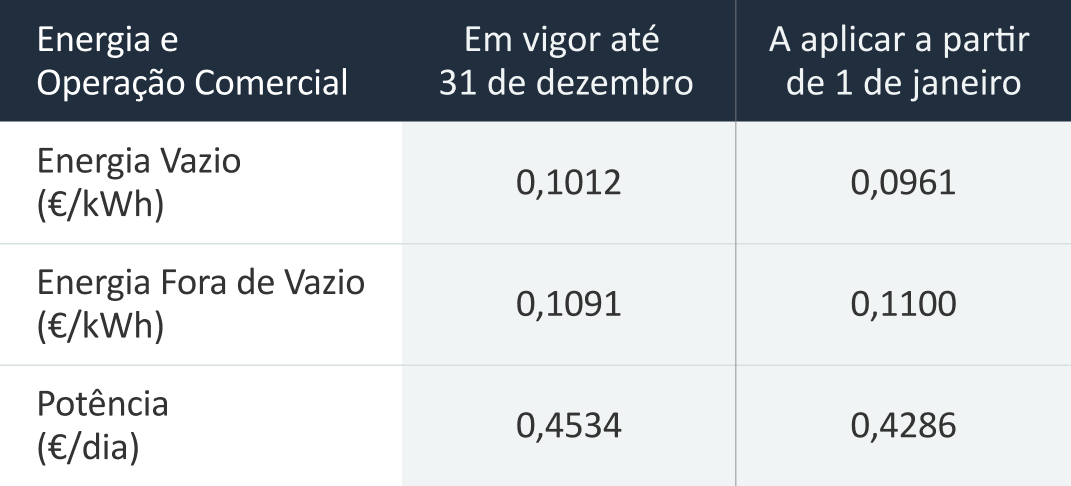 Pode consultar, na tabela abaixo, o preço da eletricidade que lhe será aplicado a partir de 3 de janeiro de 2023: