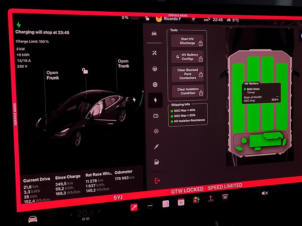 A única maneira de andar com confiança nesses níveis será com o Scan My Tesla, para ir monitorizando o SOC real e tensão na célula mais fraca.