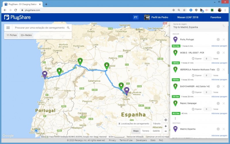 O "único" problema é que tanto no plugshare como no abrp estão a contar com PCR que ainda não existem, estão apenas em construção, como é o caso do Iberdrola na fronteira.