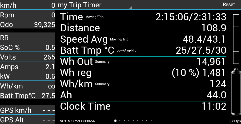 Dos 100 aos 0,5% gastou 14 961 Wh e regenerou 1 481 Wh o que dá um total de 13 480 Wh gastos.