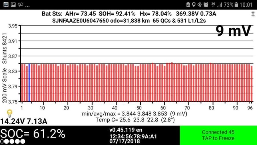 Pelo que tinha lido, sei que veria uma subida do SOH, mas assim tanto, nunca esperei. São mais de 8% de melhoria.