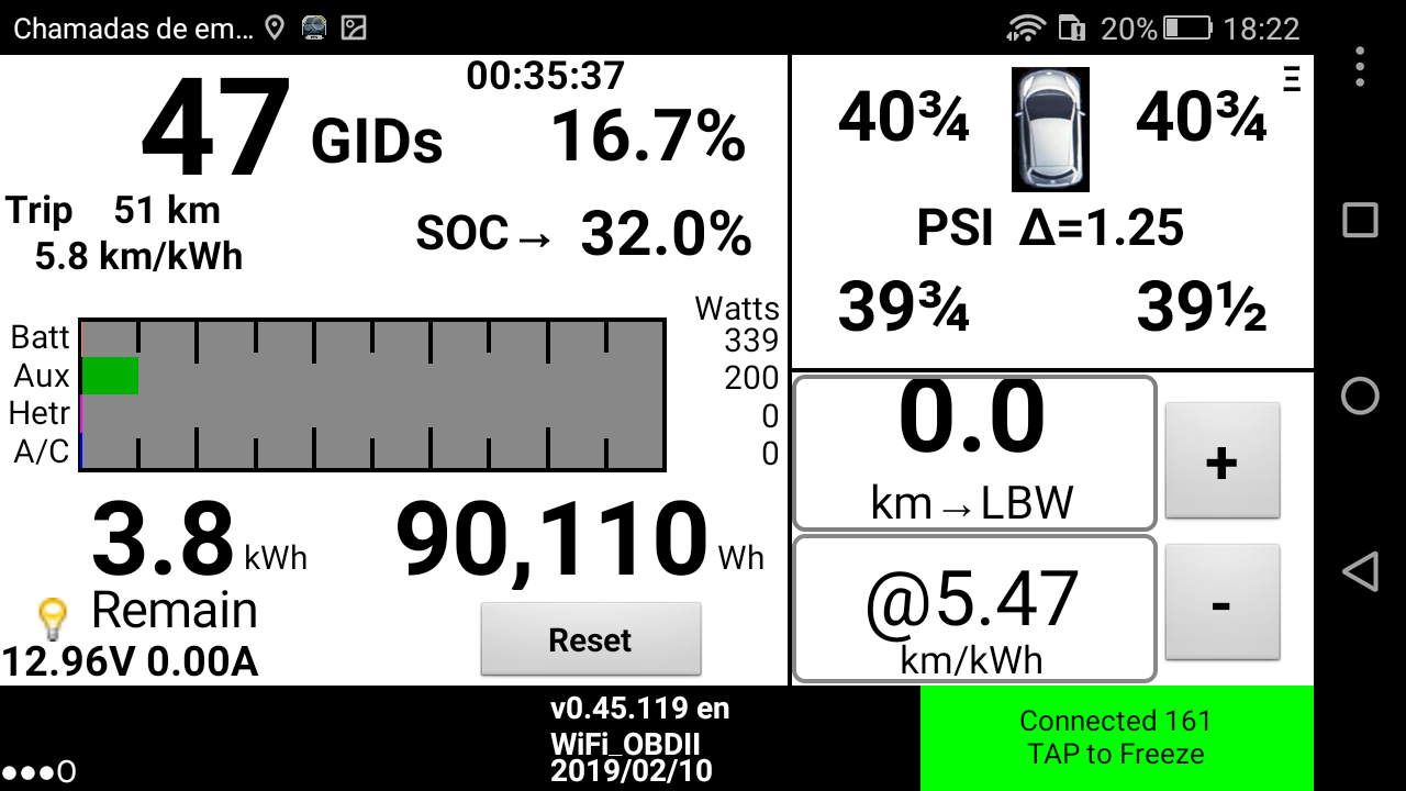 No Nissan Leaf 1, não tenho a certeza se todos têm medidores de pressão. Os que têm, o carro avisa quando há pneus com baixa pressão.