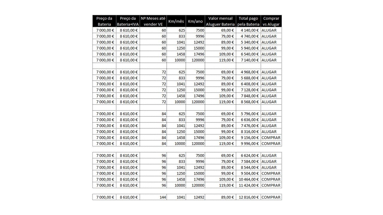 Aluguer da bateria (só porque sim, para evitar refutações) 982€ vs 0€/ano