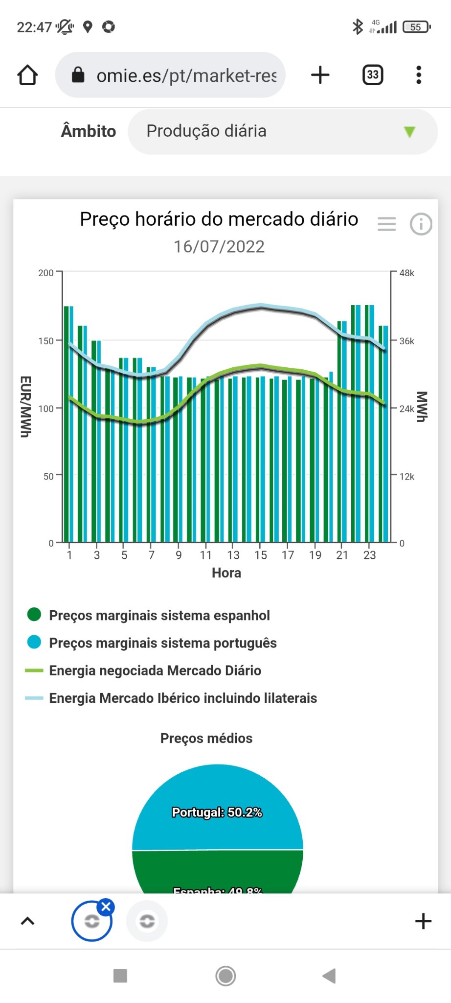 Com preços do gás nos 110-140€/Mwh era de esperar. A energia gerada através do gás custa normalmente ais do dobro do preço da matéria-prima.... Em vagas de calor, com seca extrema e sem vento, pois é mesmo duro.BrunoAlves Escreveu: 15 jul 2022, 23:02 Para amanhã o valor médio da compensação é aparentemente superior ao valor médio da energia.