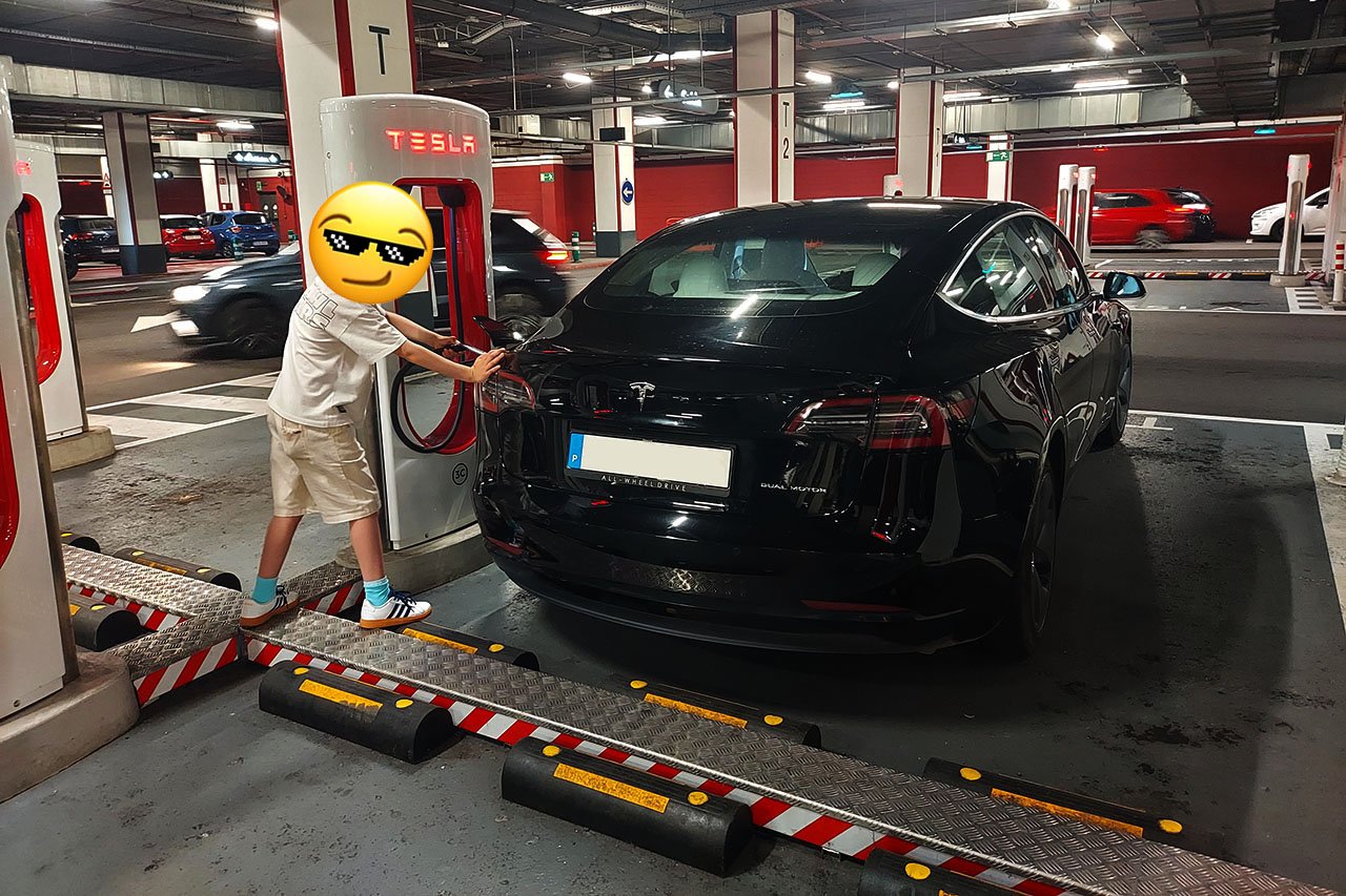 Sem carregador no hotel ou lá perto, pela primeira vez tinha pela frente uma viagem tão longa (560km) sem iniciar a 100%, pelo que a primeira paragem foi logo após a primeira hora de percurso, com chegada ao Supercharger a 12%.