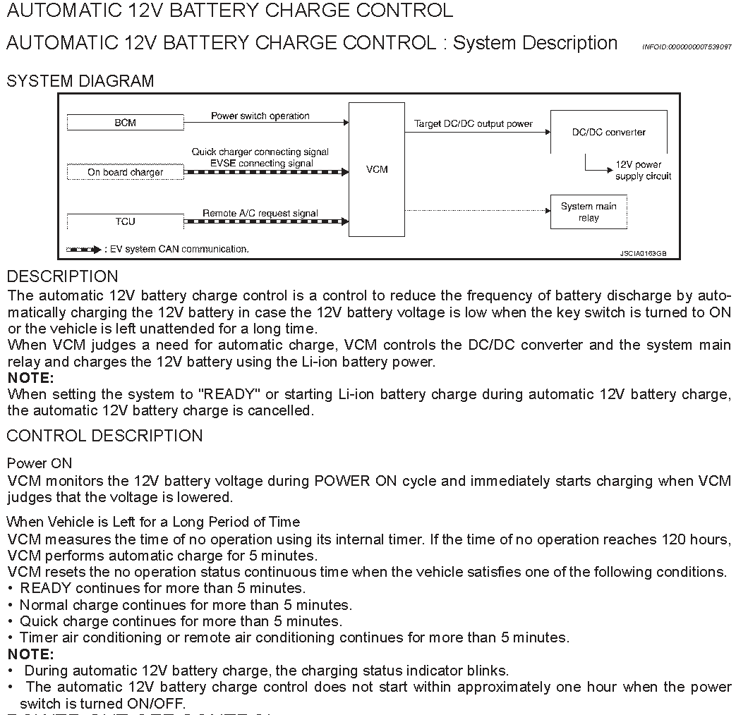 Para o Leaf não ligar, a tensão da bateria não é suficiente para atracar o relê de segurança da bateria de tração. Depois deste relé atracar o carregador da bateria começa a trabalhar e num espaço muito curto leva a bateria de 12v ao máximo.