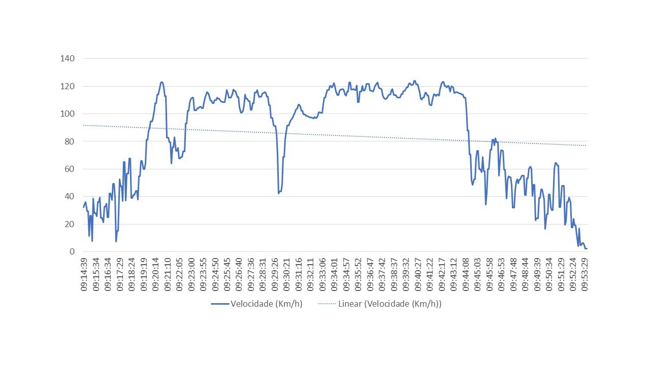 Nas imagens abaixo é perceptível ter noção da localização tendo em consideração a velocidade e o consumo.