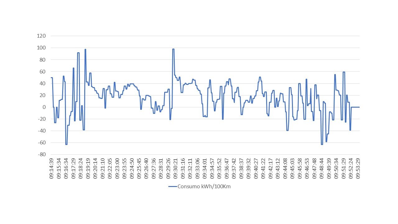 O Consumo médio foi de 17,9 kWh/100 km com uma velocidade média de 80,8 km/h. À saída da A8 o consumo médio estava mais próximo do 20 kWh/100 km