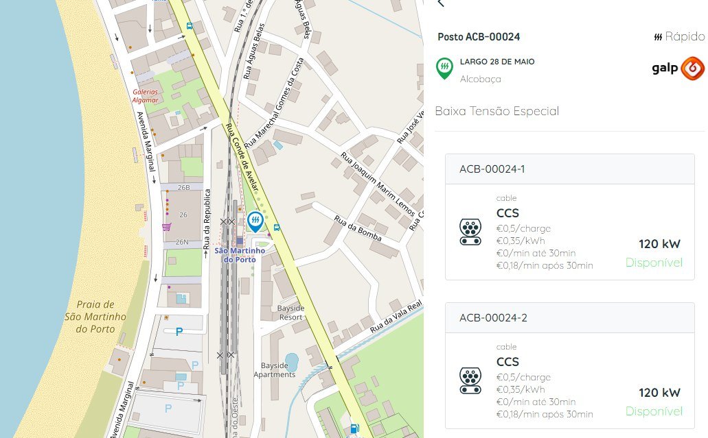 Custo de 35cts/kWh + 0,18€/min e o posto apenas debita 120A! Em >90% do parque de VEs, carrega mais devagar que os velhinhos PCR de 2016!