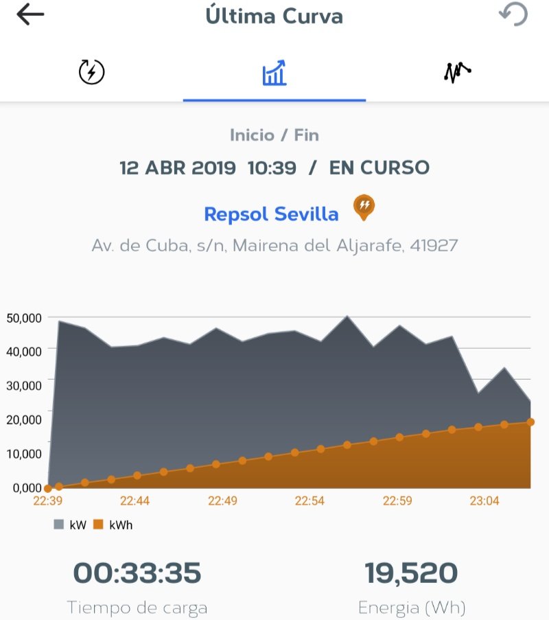 Inclusivamente na app durante e depois do carregamento é possível ver a curva de potência sem necessidade de adaptador OBD.