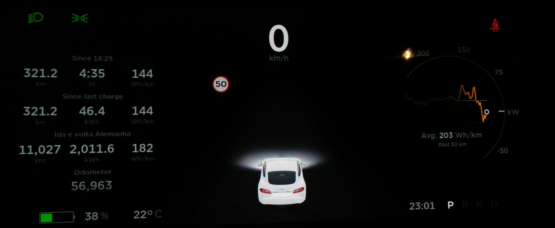 Consumo nestes 321 km: 46.4 kWh
