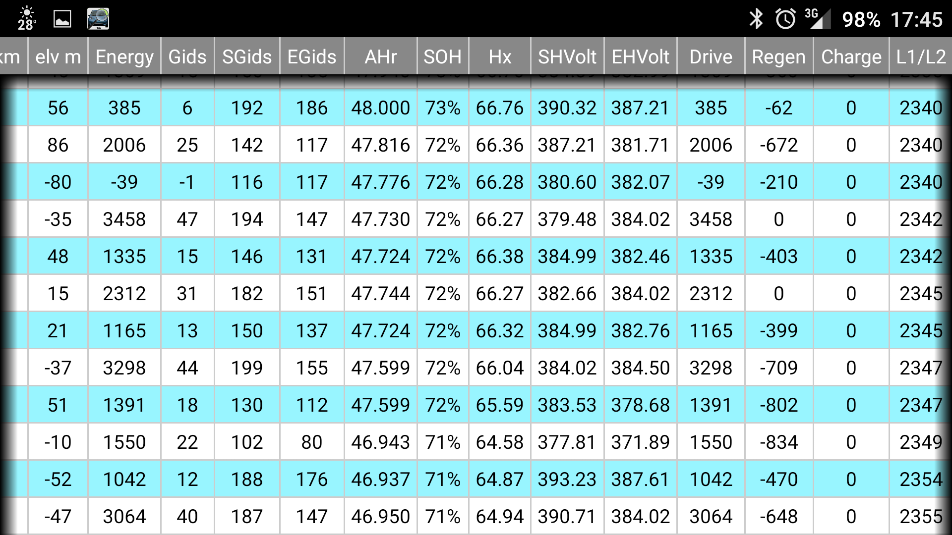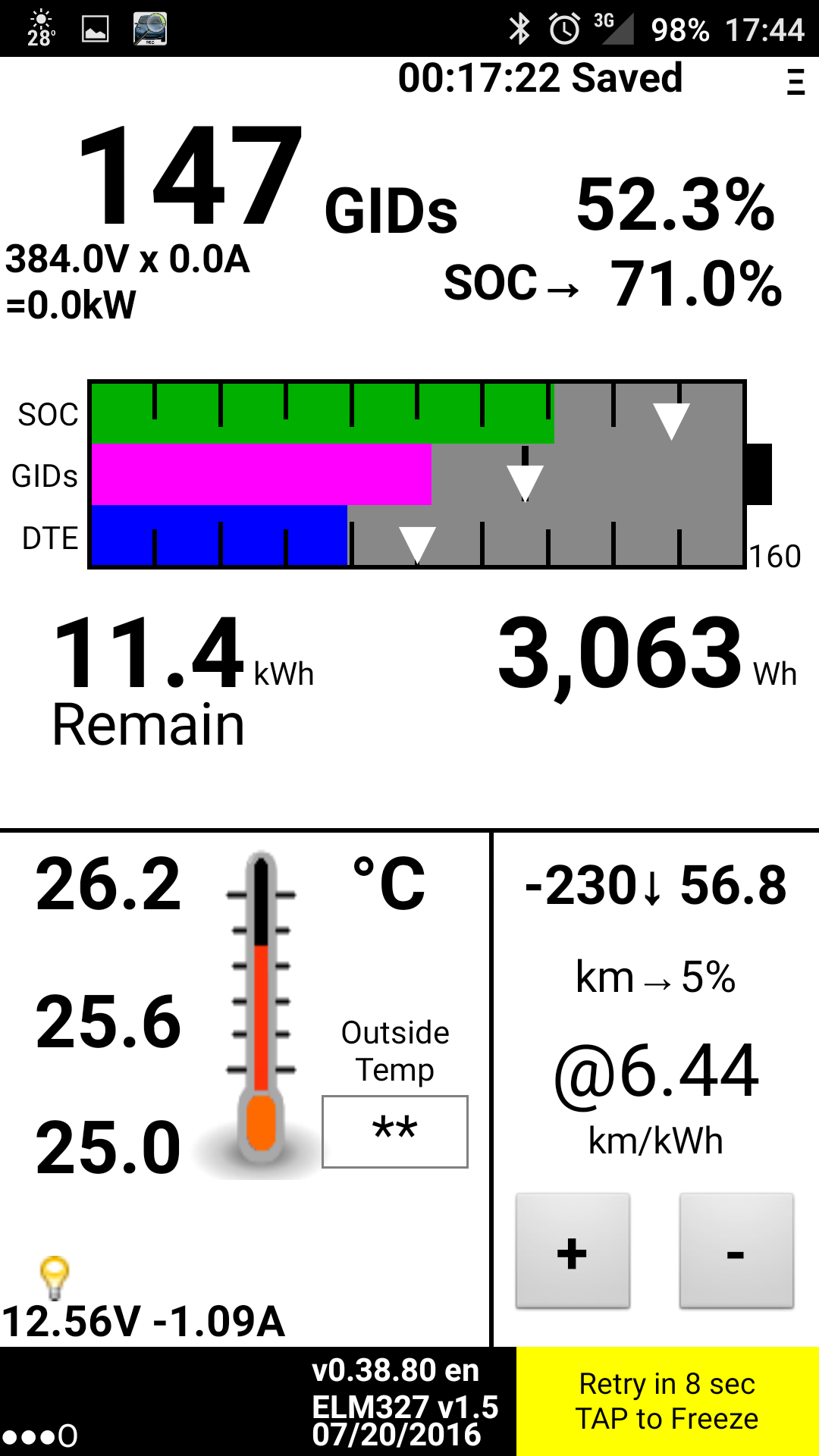 Está quase igual ao meu (47,15Ah), mas com metade dos km e menos 1 ano. A próxima barra desaparece por volta dos 43,5Ah. Dá tempo para perder mais uma...