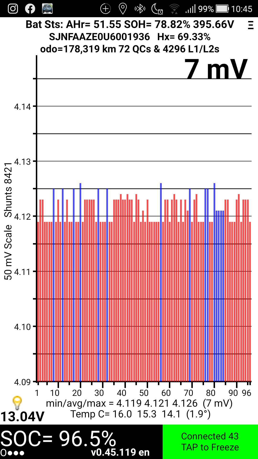 5 anos e meio, 150000km, 11 barras, 53.41AHr, 81.66 SOH. Terá perdido cerca de 20% da autonomia (quando era novo). Mas continuo a fazer bastantes km's com o meu Leaf.