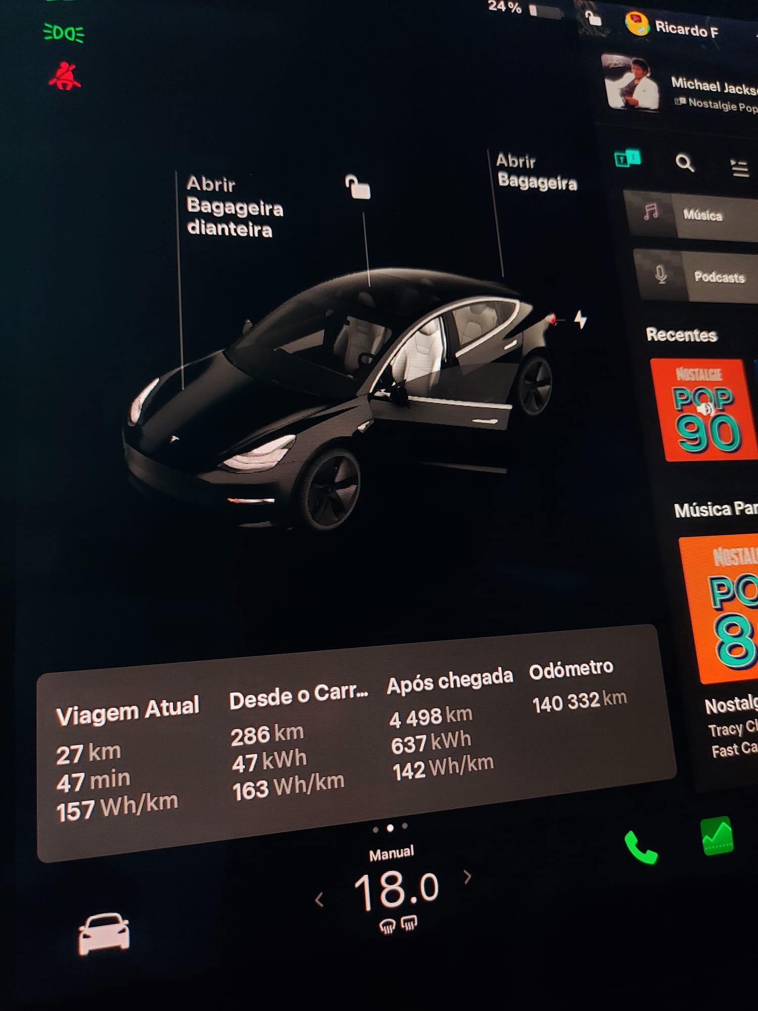 A meio da semana um Venda do Pinheiro - Lisboa - Malveira - Lisboa - Torres Vedras - Venda do Pinheiro, obviamente sem qualquer preocupação com "vai dar?" e sem alterar a rotina dos 75% de carregamento. Pequenos pontos bónus no dia por aquelas pequenas coisas como poder usar o ecrã para ver um filme na Disney+ com o mais velho enquanto a mãe tratava de outros assuntos (espetáculo não ter birras por não querer esperar :D ) ou o summon quando nos entalam o carro no estacionamento do supermercado.