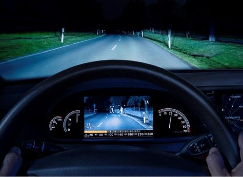 Con un alcance máximo de 150 metros, un sistema de infrarrojos y una cámara identifica y nos avisa de cualquier imprevisto en la carretera, para de esa manera tomar la decisión adecuada en cada momento de la forma más rápida, ya que podremos distinguir si se trata de un objeto que obstruye la carretera, o un ciclista, un sistema que estará presente en la clase S de Mercedes, y que se espera se extienda por el resto de modelos del mercado.