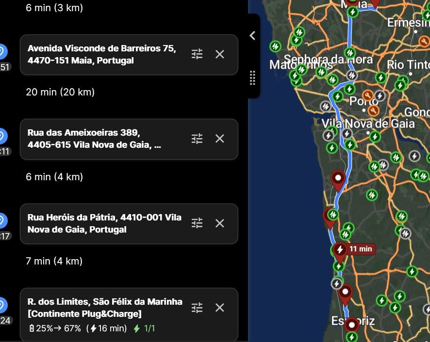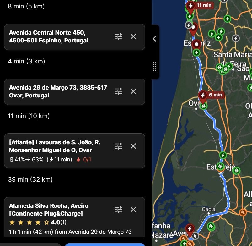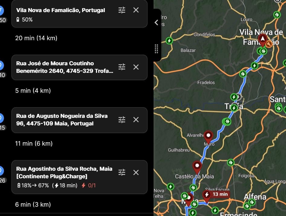 Para a viagem, tenho que fazer 120kms com ele, vindo do norte... já tenho o caminho organizado através do ABRP, app do continente instalado, miio e cartão físico da EDP como último socorro.
