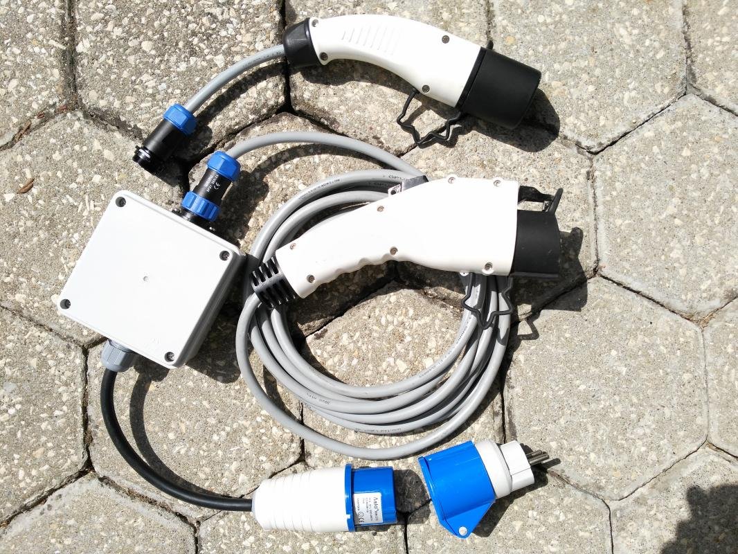 No meu carro ando com 5m de cabo agarrado à ficha J1772 e depois na outra ponta ou ligo a ficha Mennekes ou o EVSE.