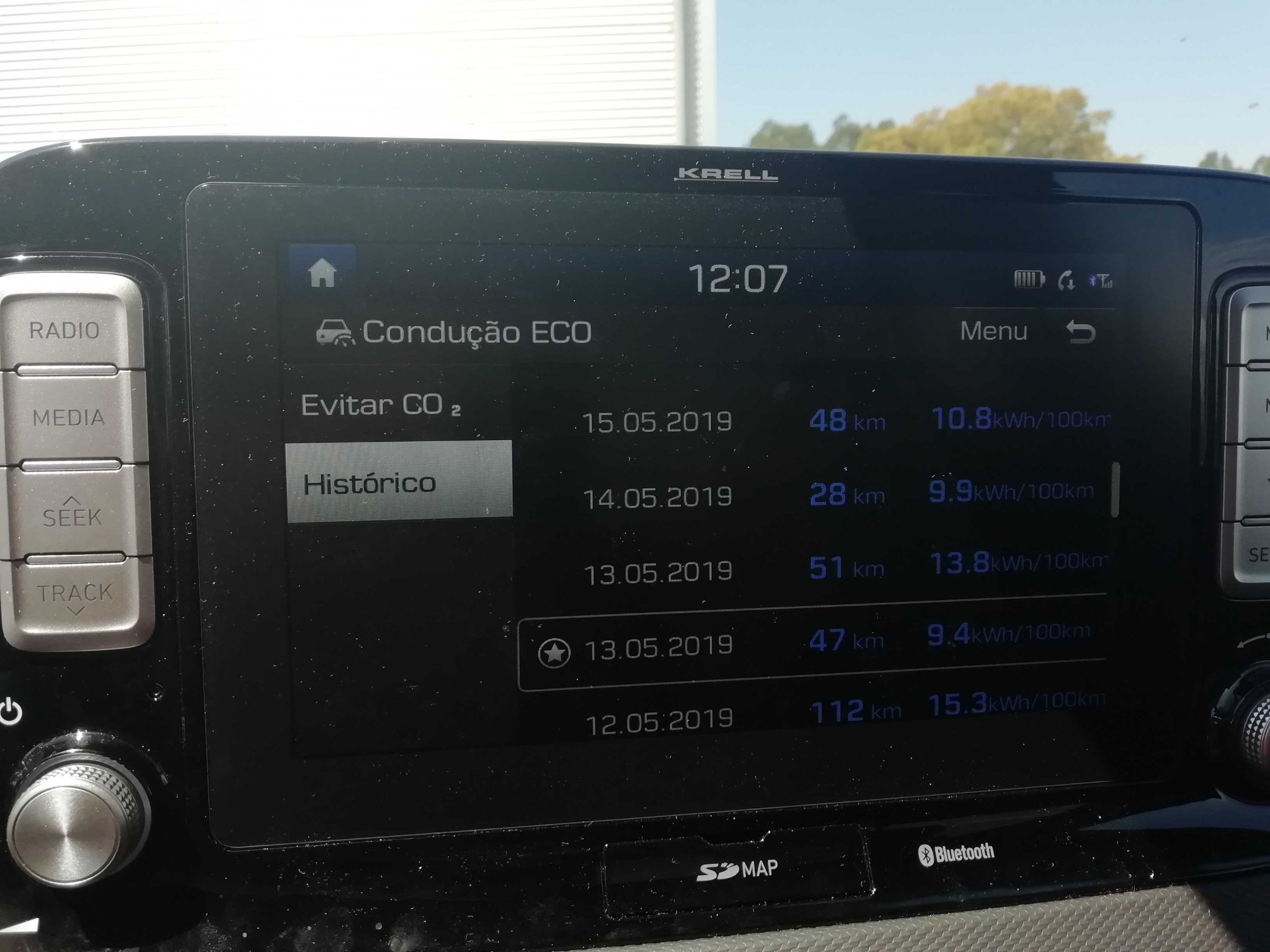 De referir que o “carro” guarda automaticamente os consumos, respeitando um intervalo de 6 horas, no caso do carro não circular, hora bem, no dia 16/05 apresenta duas viagens, a de ida e a de volta, havendo diferenças pois o trajeto da volta é a subir, circuito esse com 20 km em AE, na ida o consumo é baixíssimo, o que no seu conjunto faria 12.1. O mesmo se aplica ao dia 20/05 e 21/05.