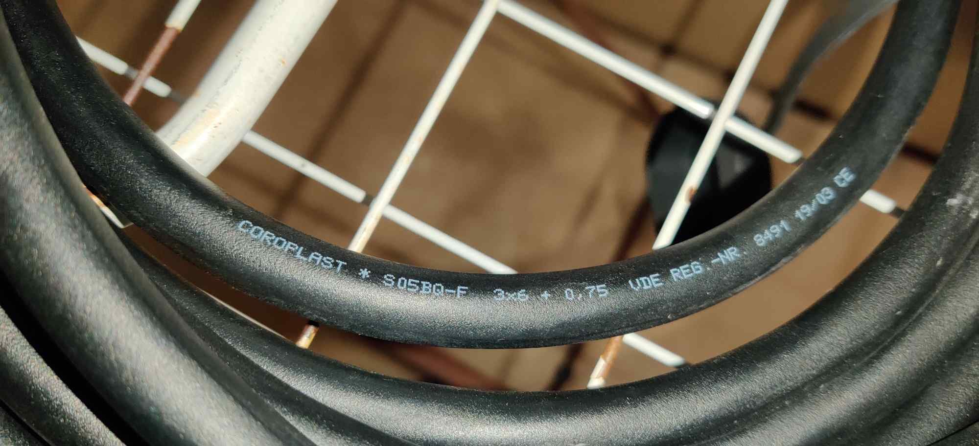 Analisei o cabo e parece ser de 32Amp, pelo menos é o que está na etiqueta. Junto fotos.
