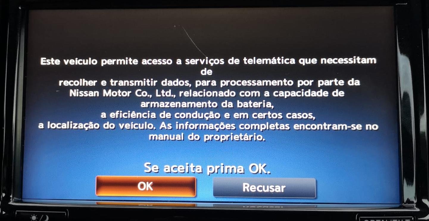 Não dá para não aparecer. Todas as vezes que ligas o carro tens de dar permissão para que a telemática funcione, uma vez que envia dados do carro e das viagens para a Nissan