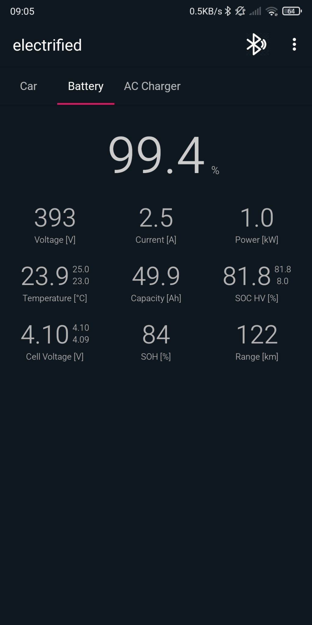 É a primeira vez que vejo uma folga diretamente nos dados internos do carro. Os meus carros Leaf mk1, Leaf 40 e TM3, nenhum deles tem qualquer folga digna desse nome em baixo. Em cima só o Leaf mk1 tem, pois carrega até aos 4,11V/célula.