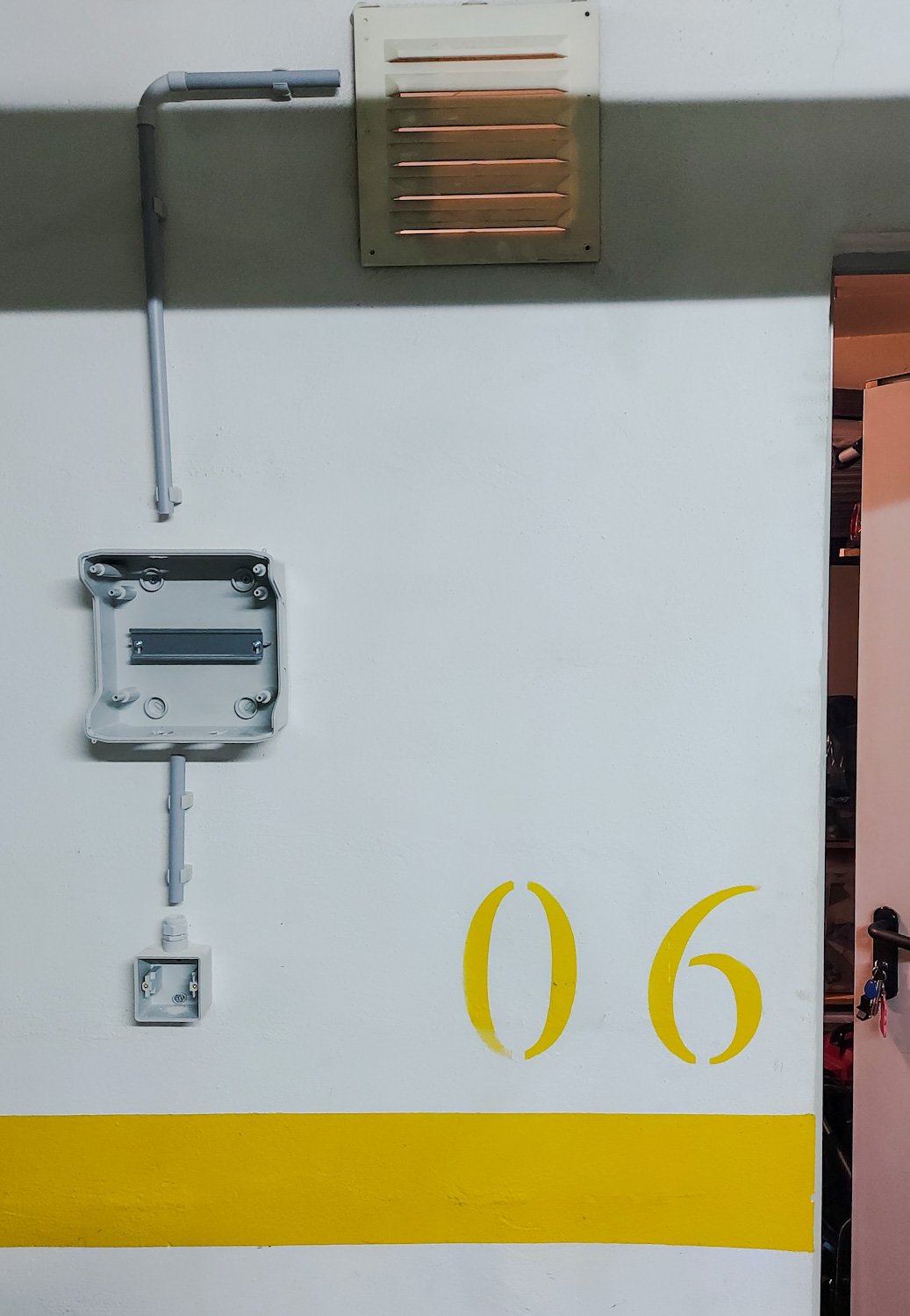 Como já tinha por aqui o material, nem era tarde nem cedo, vamos iniciar a ligação à parede exterior com diferencial próprio e descarregador de sobretensão, já que tivemos por aqui casos de material danificado por picos de corrente por mais do que uma vez.