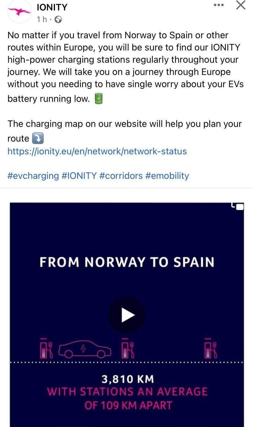 Guardem esta informação: from Norway to Spain. Palmas. Com certeza culpa da ionity, claro.