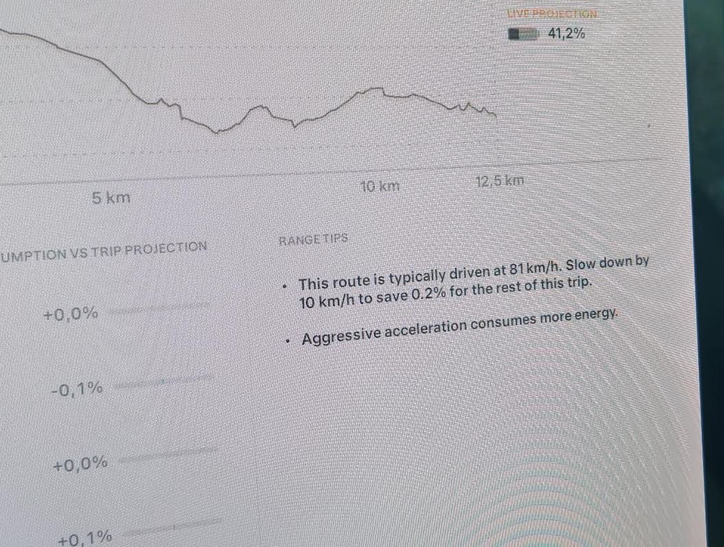 A simulação na aplicação Tesla é que vou chegar ao restaurante com 30%, embora acredite mais nos 25%.