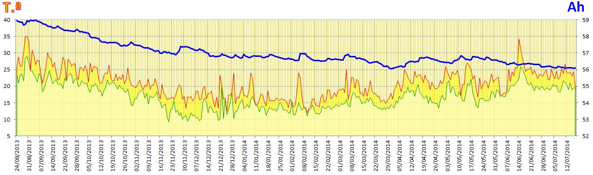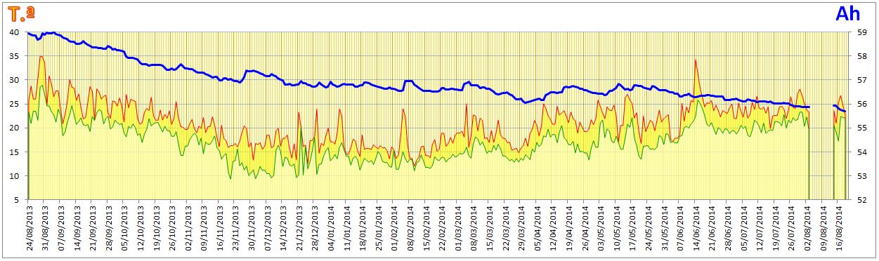 No início do mês (02-08-2014), estava ele prontinho para adormecer na garagem com a bateria a meio SOC, quando surge a necessidade de uma viagem não programada. Ora, lá teve que ir ele mesmo assim. Mais umas voltinhas necessárias e o gajo fica neste estado: