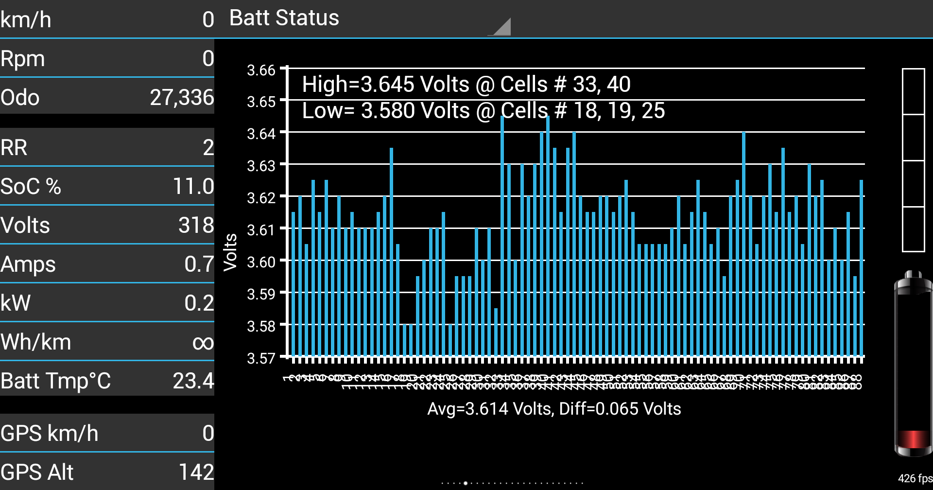Aproveitei para tirar o famoso screenshot a 11% de SOC, por causa das diferenças de células. Ficou assim: