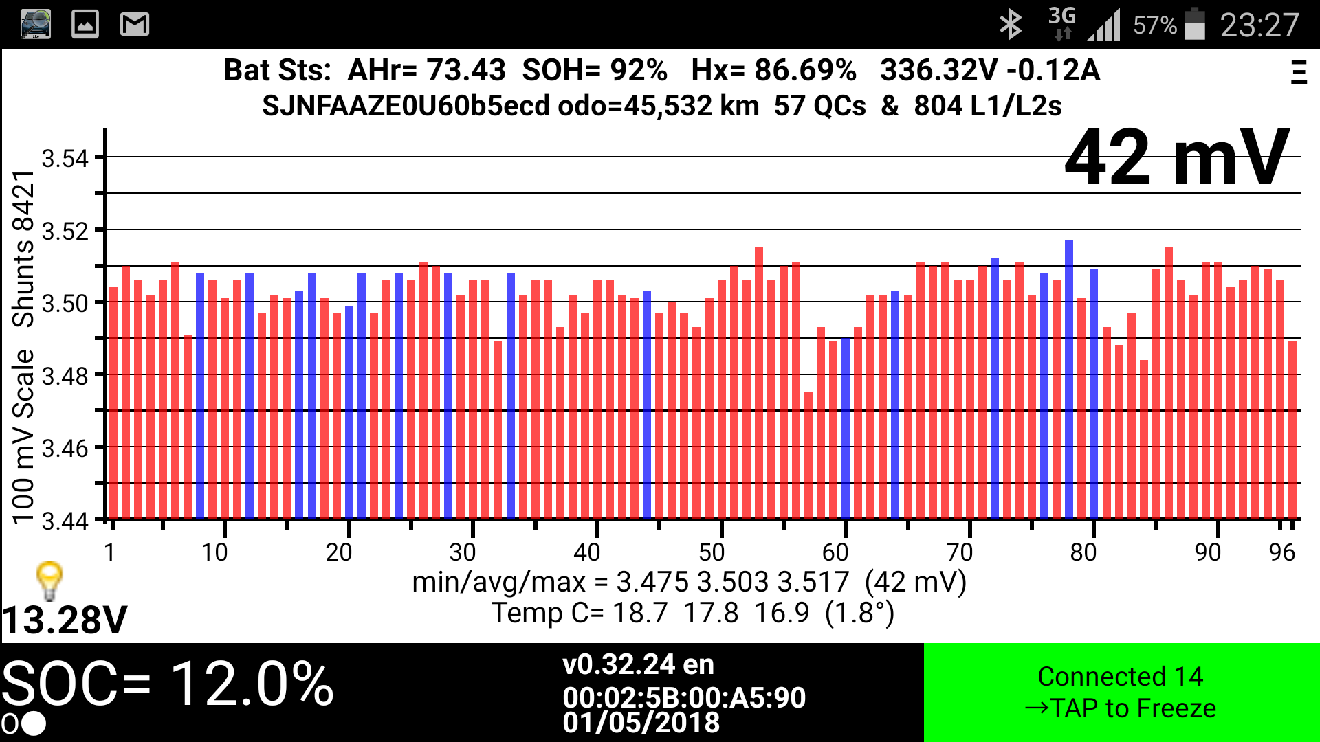 Quero acreditar que os valores apresentados pelo leafspy para SOH e Ahr não representam o real estado da bateria pois continuo a fazer o mesmo trajeto diariamente e o valor que obtenho no GOM continua a ser praticamente o mesmo que tinha no inicio.
