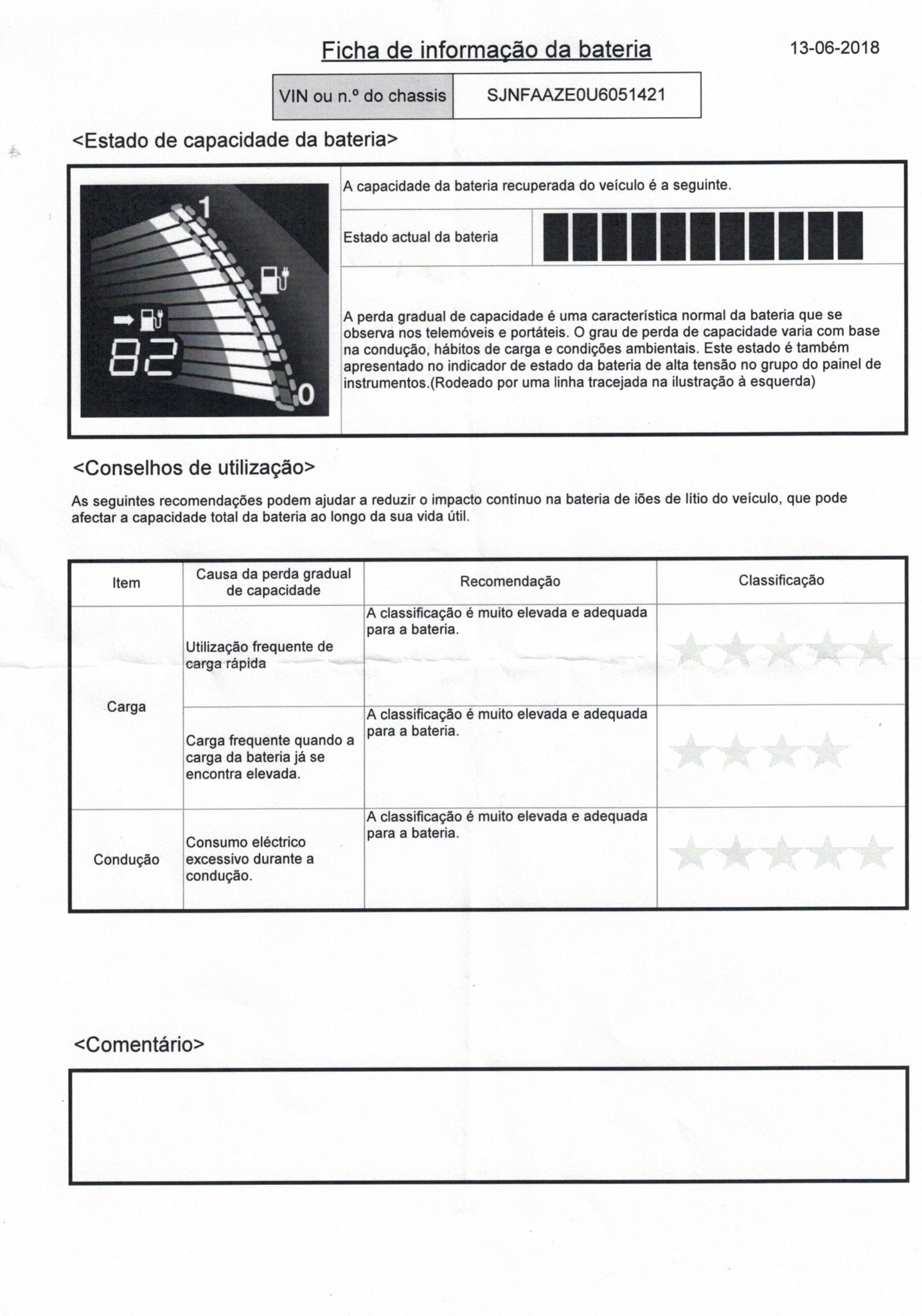 Fui à Nissan na passada semana e o relatório que fizeram "acusou", "carga frequente quando a carga da bateria já se encontra elevada".