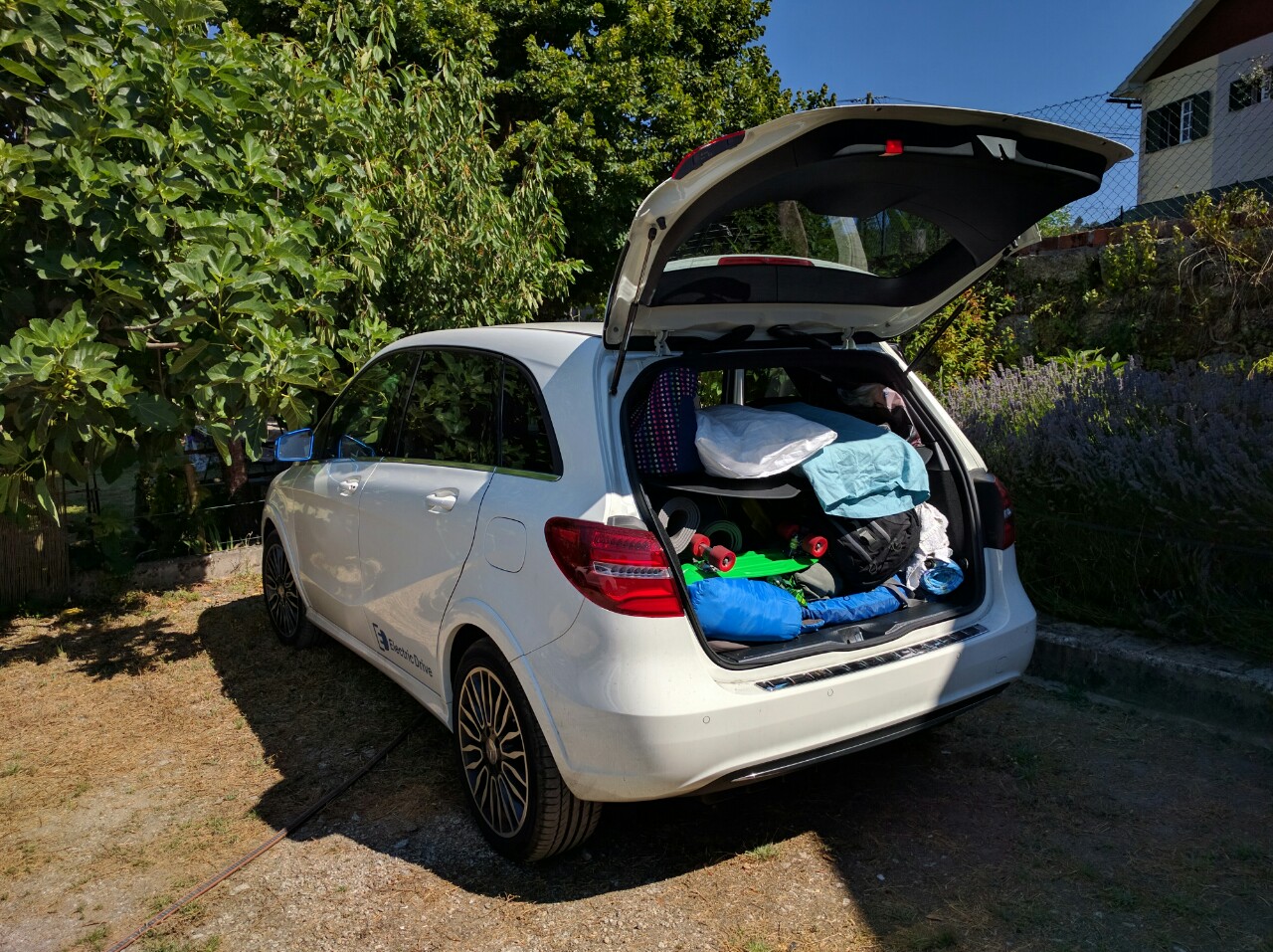 Para mim a grande incógnita seria o consumo a 90km/h, com o peso todo, mais AC a 23/24ºC (as temperaturas exteriores foram 32/36ºC na ida e na volta). Eu tinha feito um teste antes e com o carro vazio consegui um consumo de 16Kwh/100km.