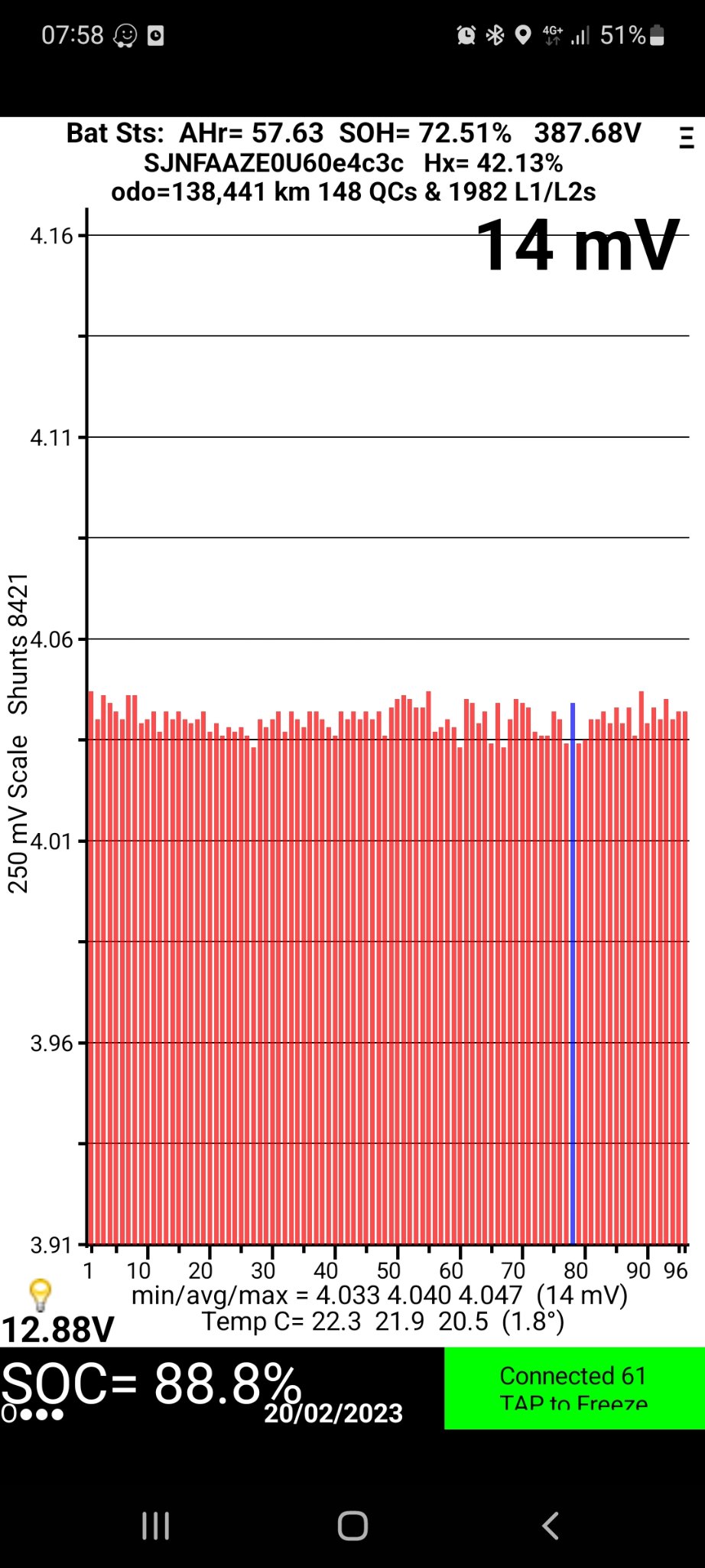 11/2023 - 140.000km (9 Barras-67.86% SOH) --- 02/2024 - 144.757km (8 Barras-65.83% SOH)