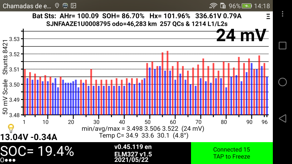 Perda da 4º barra: Dezembro de 2025 (substituição da bateria dentro da garantia, fim da garantia Março de 2026)