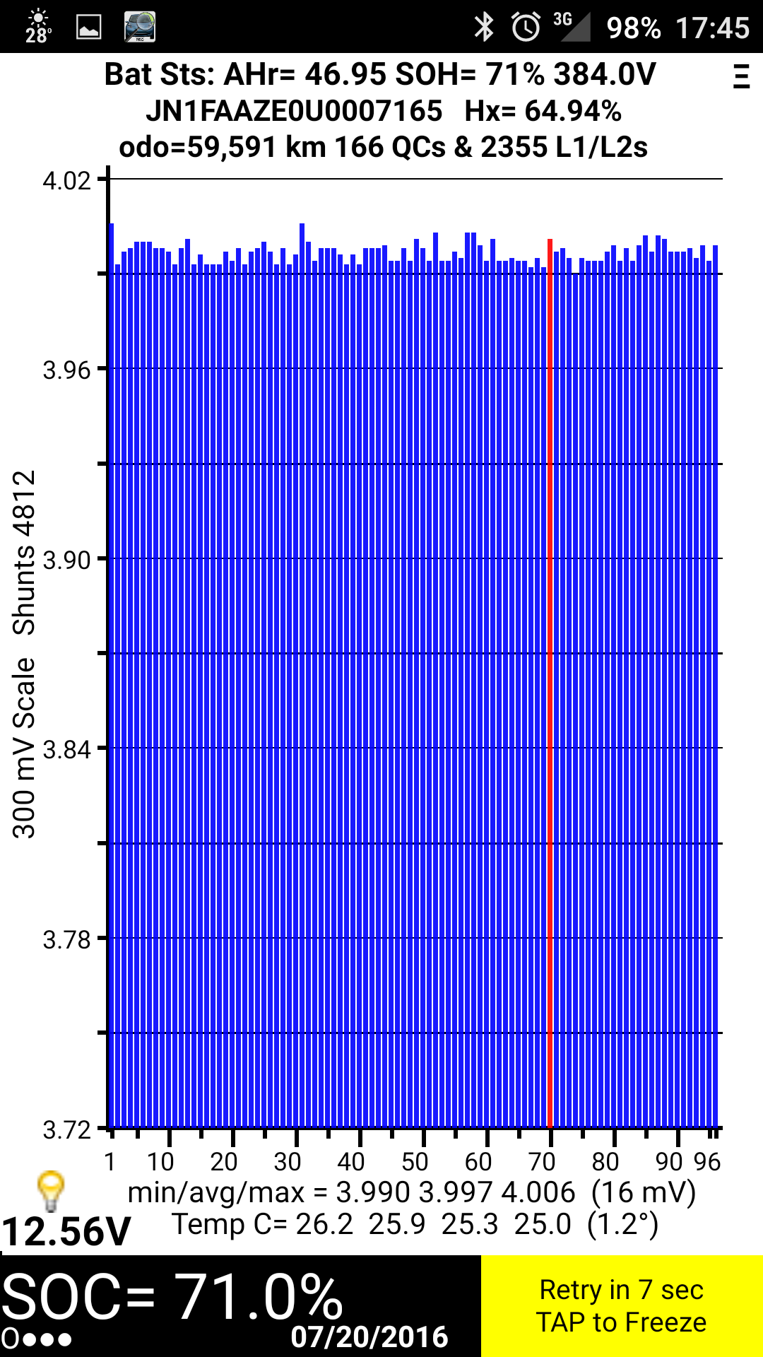 Está quase igual ao meu (47,15Ah), mas com metade dos km e menos 1 ano. A próxima barra desaparece por volta dos 43,5Ah. Dá tempo para perder mais uma...