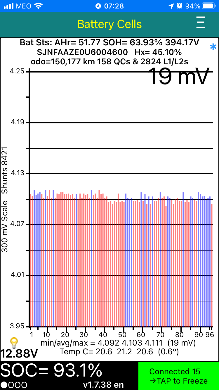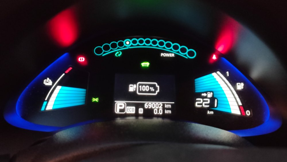 De manhã, quando sai de casa a 100%, liguei o leafspy e tinha uns 18.8Kwh na bateria. Rodei 43km`s, quando recebi o carro na oficina, tinha mais de 16KWh.