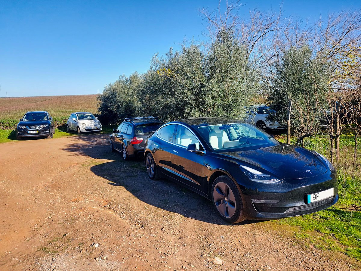 Com 2 adultos, 2 crianças e respectivas cadeiras e tralha na mala, chegámos com um consumo + range (446) muito próximos dos valores EPA do Model 3, que pelo que percebi se situam em redor dos 15 kWh/100.
