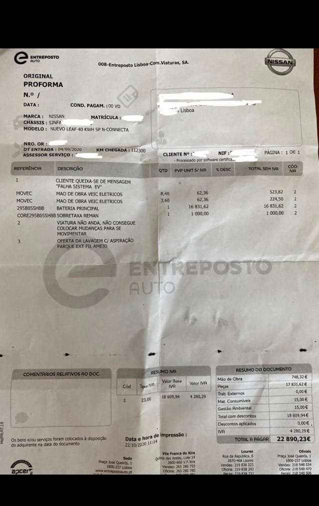 tenho o carro parado na nissan Sintra sem andar. Com esse orçamento na mão. Tem dois anos e 195000kms. Nunca perdeu autonomia.