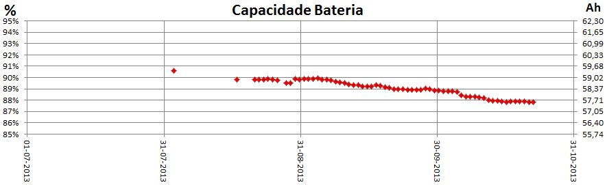 Continuo com o log LeafSpy ligado e vou tirando os mínimos diários da capacidade da bateria.