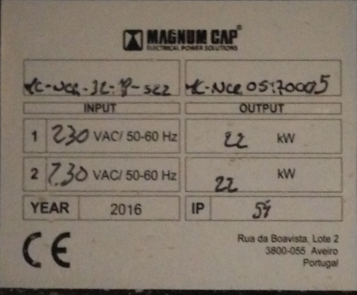 . a etiqueta diz 22 kW, com um input de 230 V, parece incoerente